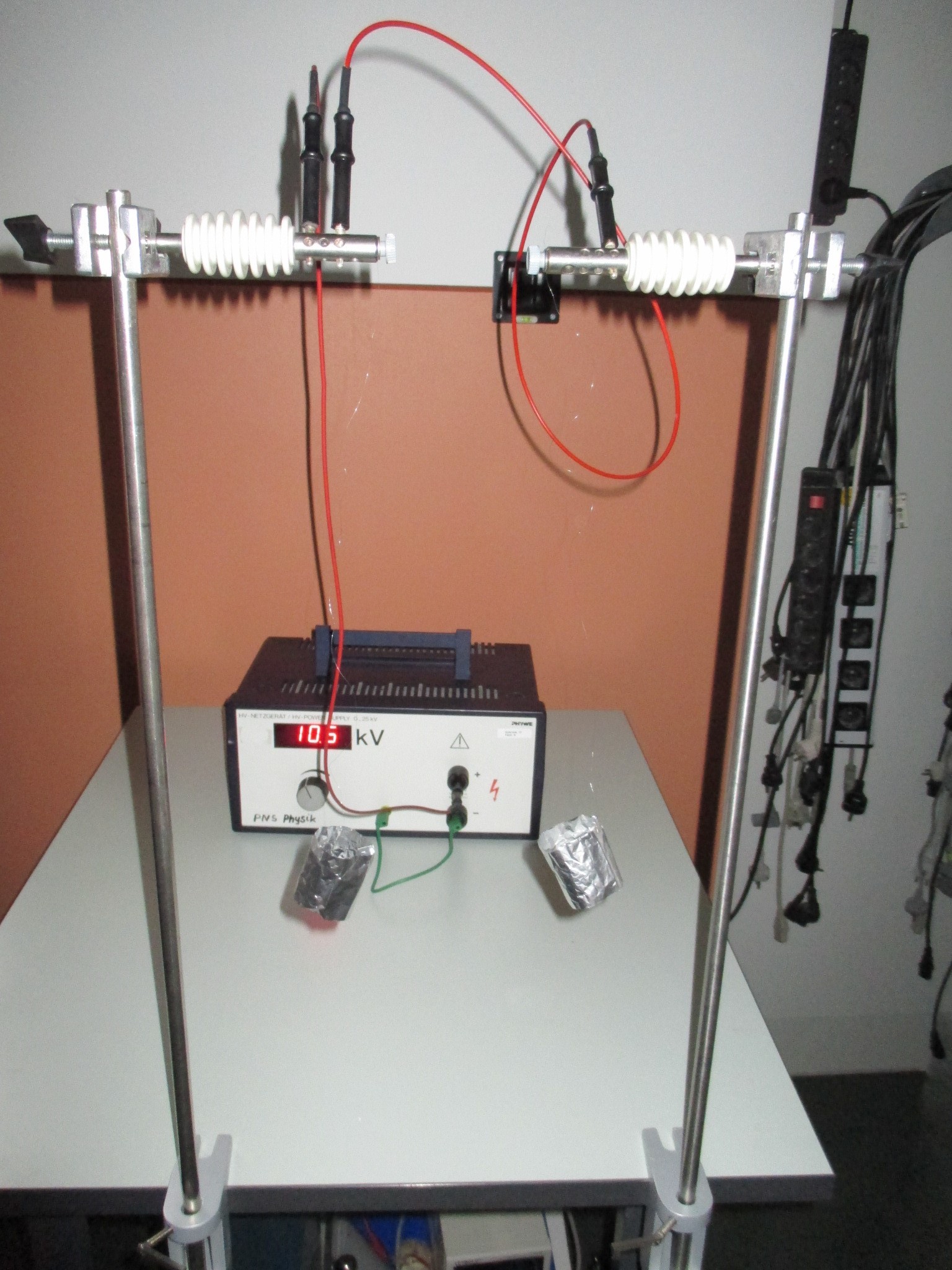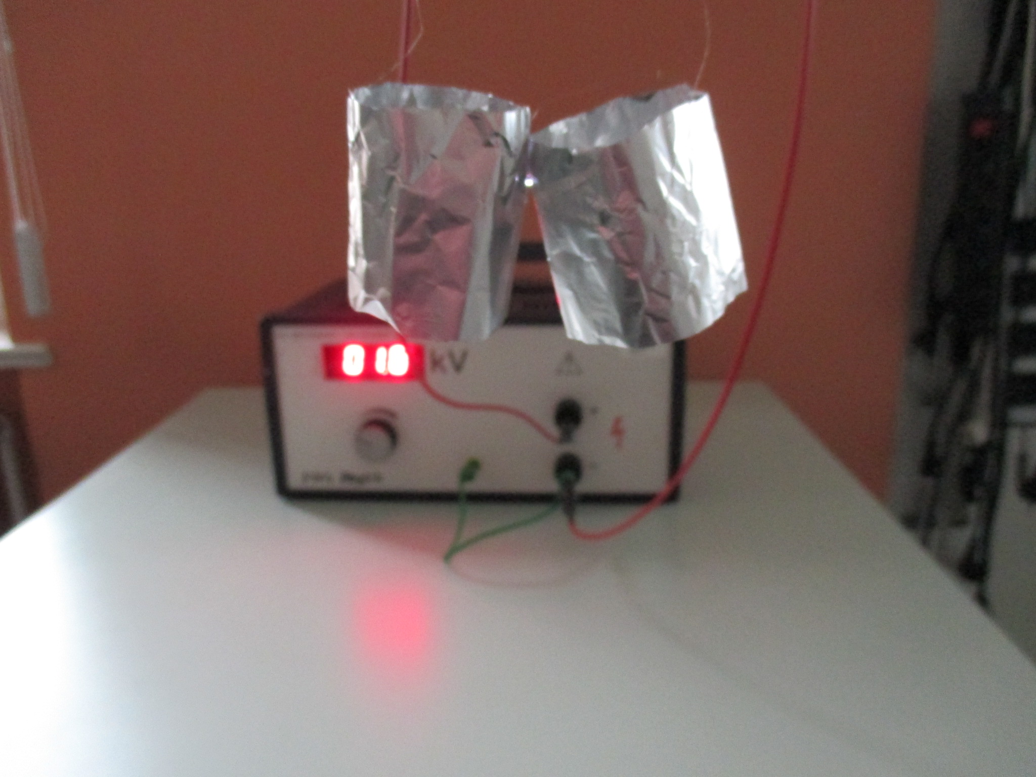 - 2 Hohlzylinder aus Alufolie leitend an dünnen Metallfäden