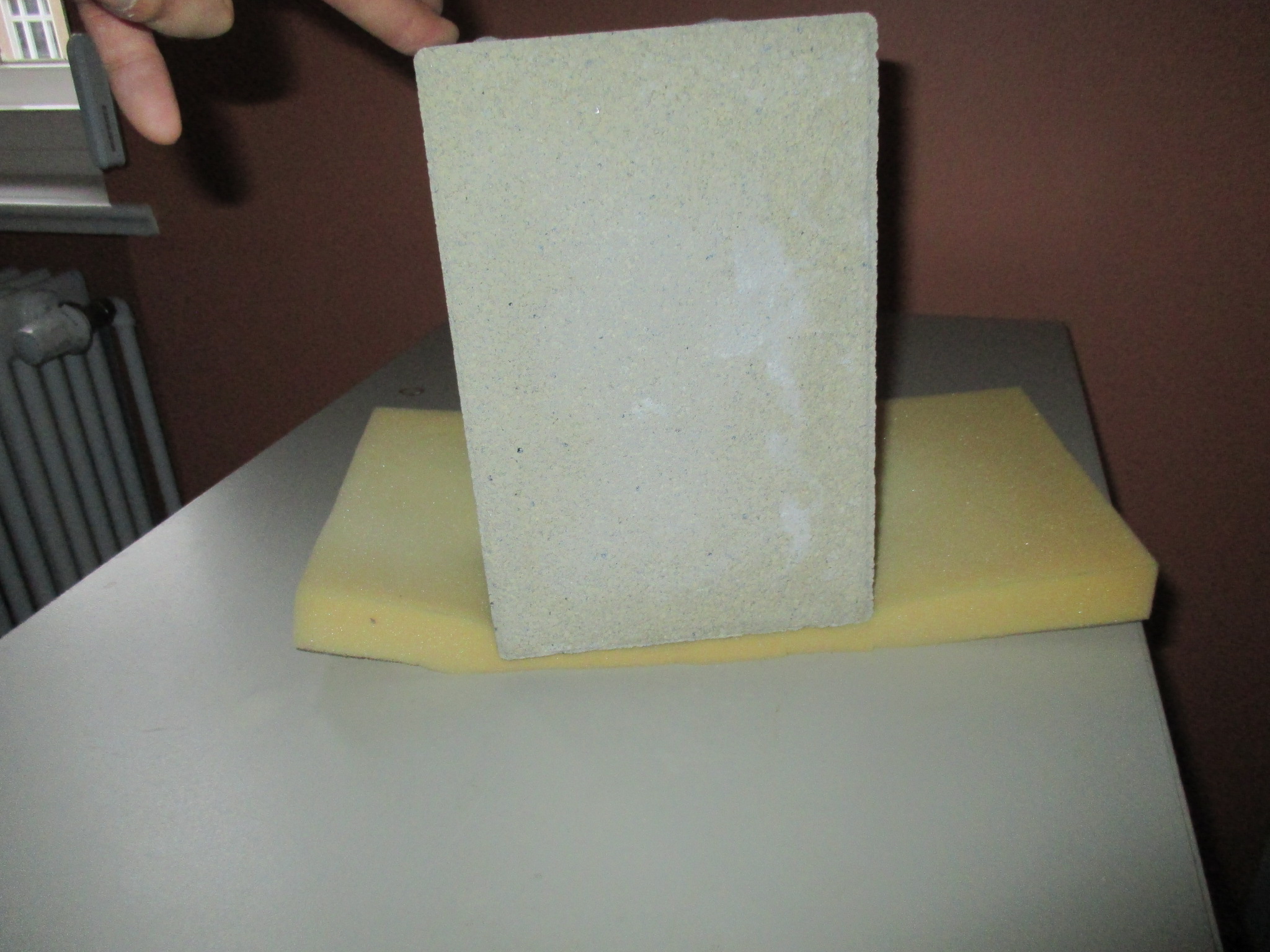 Je nach Größe der Fläche des aufgelegten Steins wird der Schaumstoff mehr oder minder stark gestaucht.