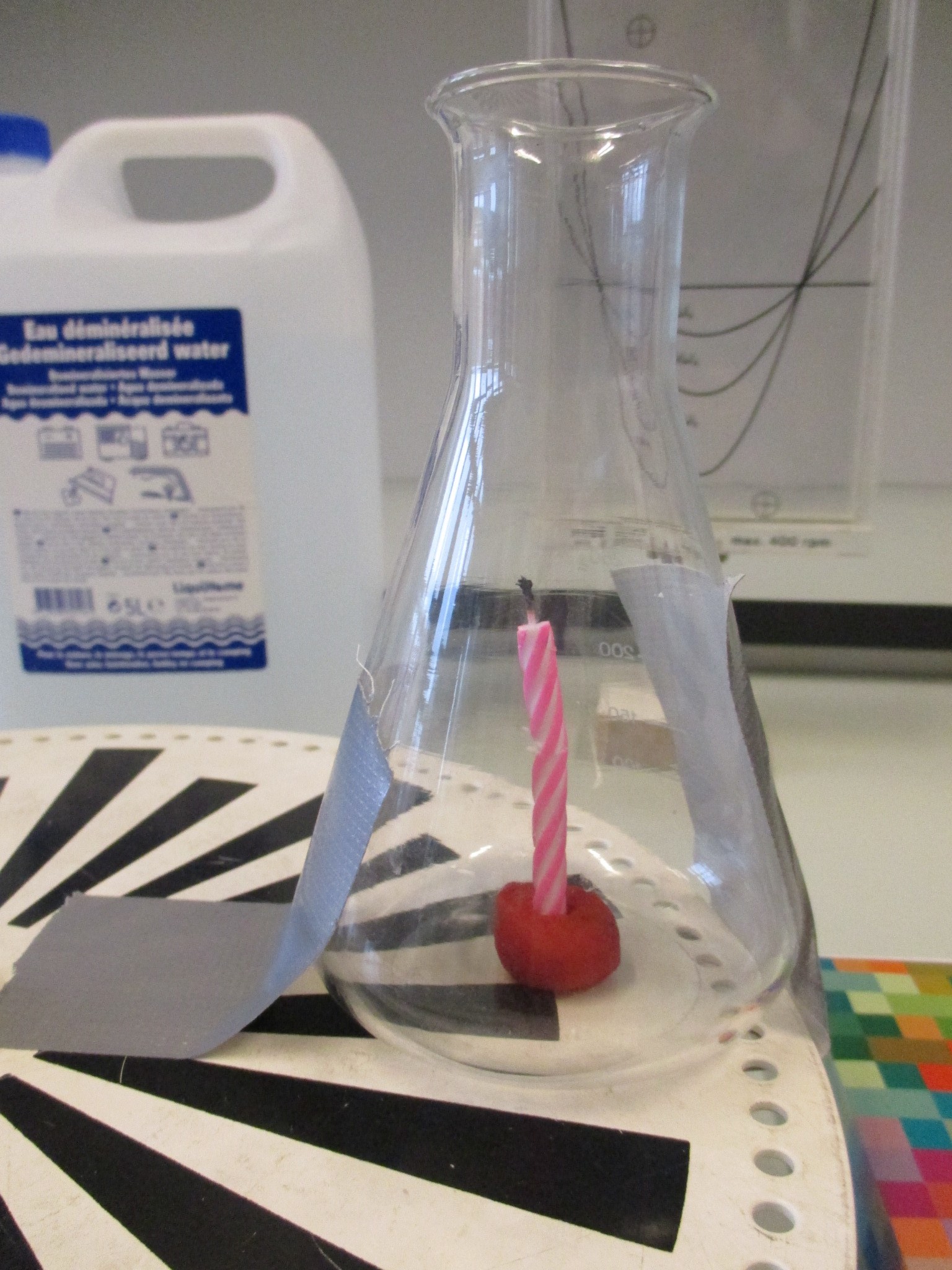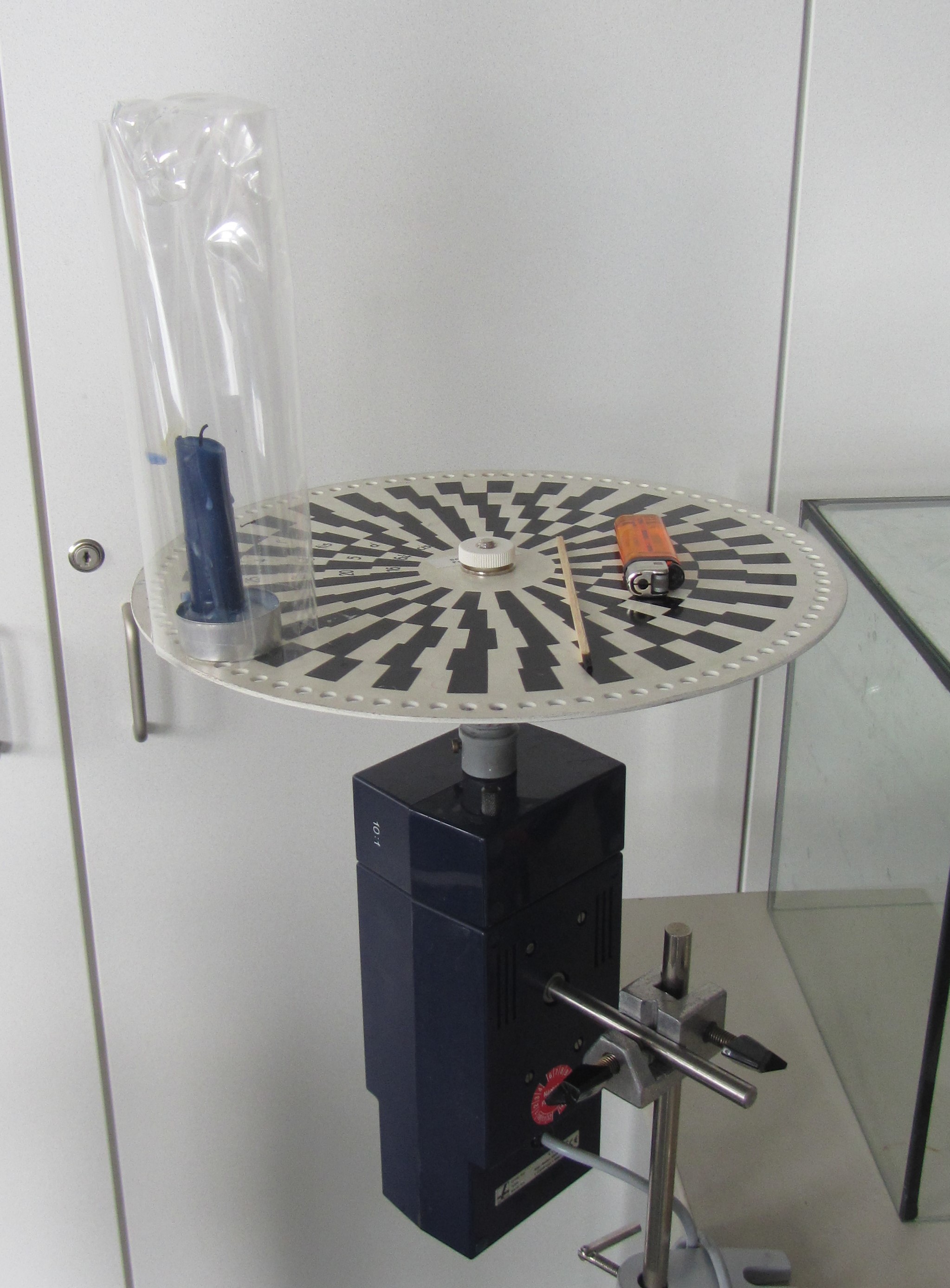 Zur Veranschaulichung von Dichteunterschieden in rotierenden Systemen (AHA-Effekt: Flamme geht nach innen)