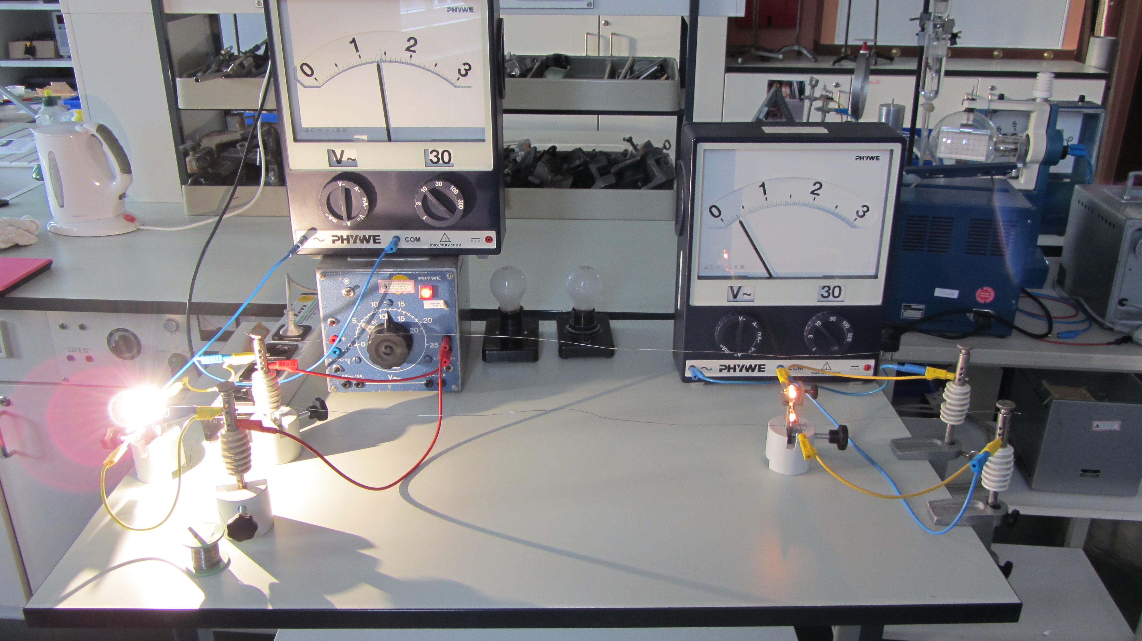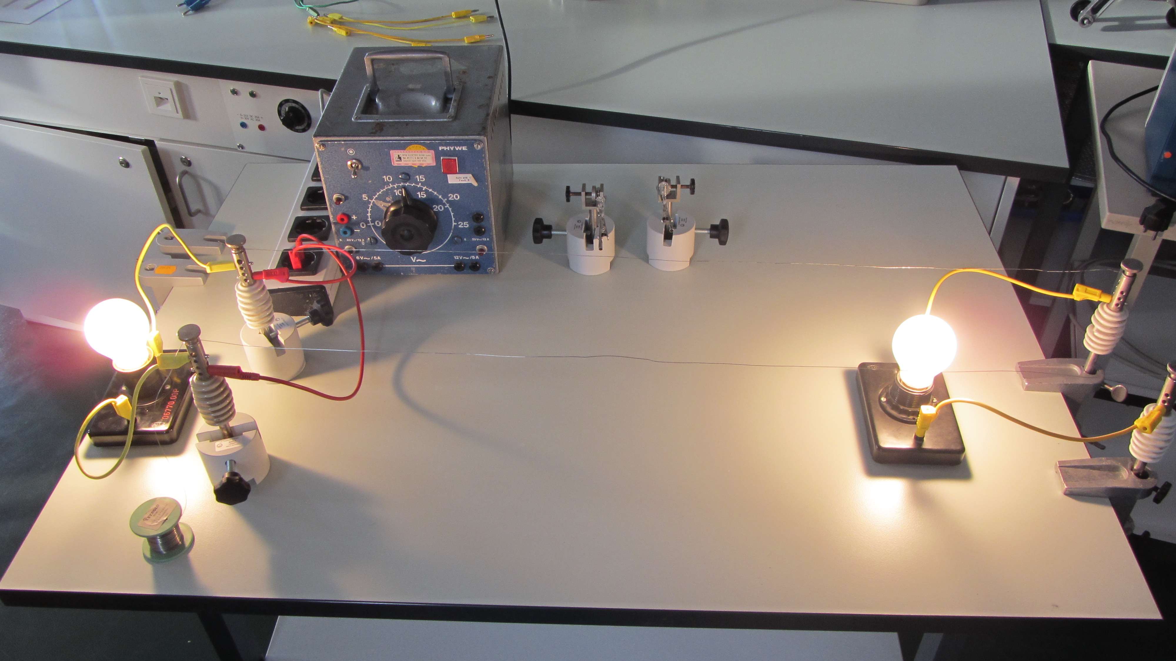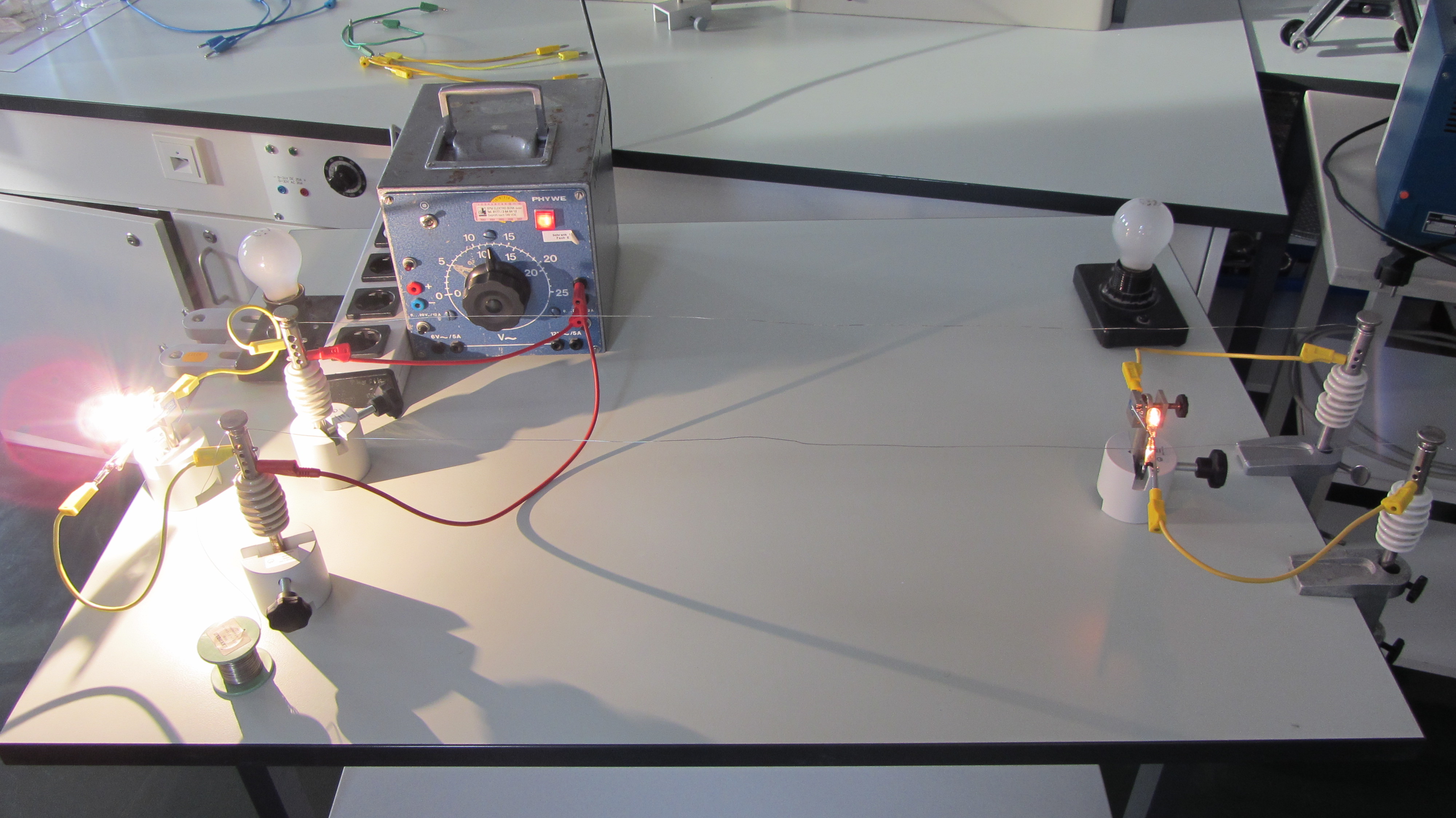 Leistungsübertragung bei geringen Spannungen führt zu drastischen Leitungsverlusten im Aufbau mit den Halogenlampen.