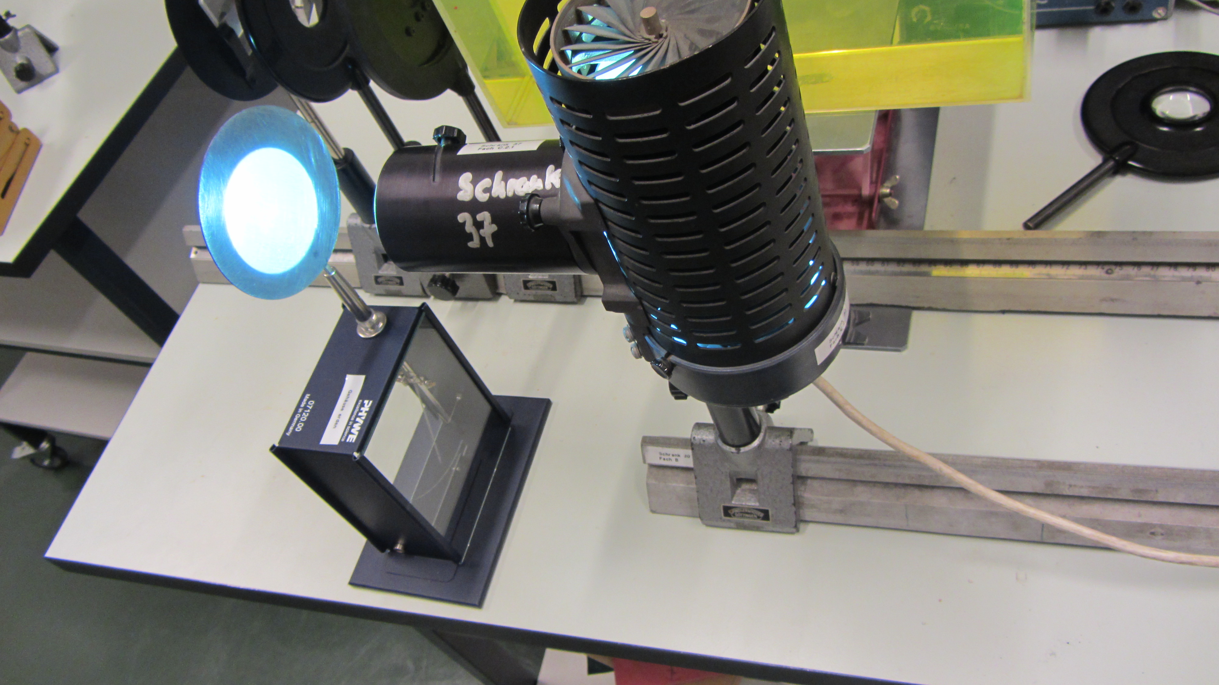 Platte aufladen (negativ) und mit Halogenstrahler beleuchten, es passiert nichts.